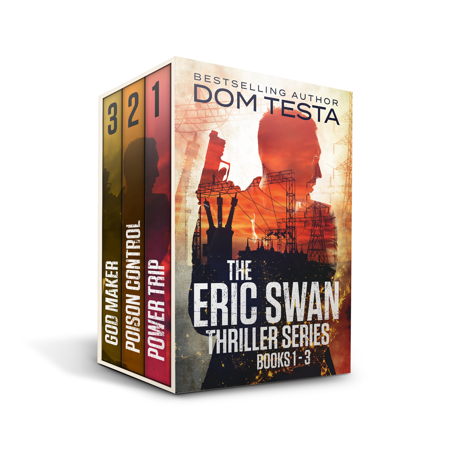 The Eric SwanThriller Series Book One:Power Trip Swan takes on a pair of diabolical twins who threaten to take down the nation’s power supply. Direct from Dom Amazon Apple Kobo Book Two:Poison Control A madman is out to poison the water supply. Swan must outsmart this Nobel-winning scientist before it’s too late. Direct from Dom Amazon Apple Kobo Book Three:God Maker A rogue Q2 agent is poised to unleash anarchy. Swan must confront this monster and his own demons. Direct from Dom Amazon Apple Kobo Book Four:Field Agent A tech billionaire plans to control the world food supply. But Swan discovers a sinister subplot that could spell disaster. Direct from Dom Amazon Apple Kobo Book Five:Quiet War Swan is on the hunt for the world’s most dangerous hacker, whose goal is nothing short of international chaos. Direct from Dom Amazon Apple Kobo Book Six:Arms Race Swan uncovers plans for a bionic soldier that could turn the art of war upside down—and change everything. Direct from Dom Amazon Apple Kobo Swan Box Set:Books 1 - 3 Get the first three Swan novels in one omnibus ebook collection, and save big! Direct from Dom Amazon Apple Kobo Swan Box Set:Books 4 - 6 Get Volumes 4, 5, and 6 in one omnibus ebook collection, and save big! Direct from Dom Amazon Apple Kobo